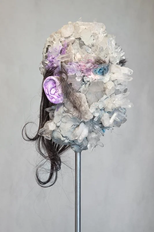 Polystyrene, expandable foam, epoxy clay, plaster, acrylic paint, glitter, quartz, synthetic hair.